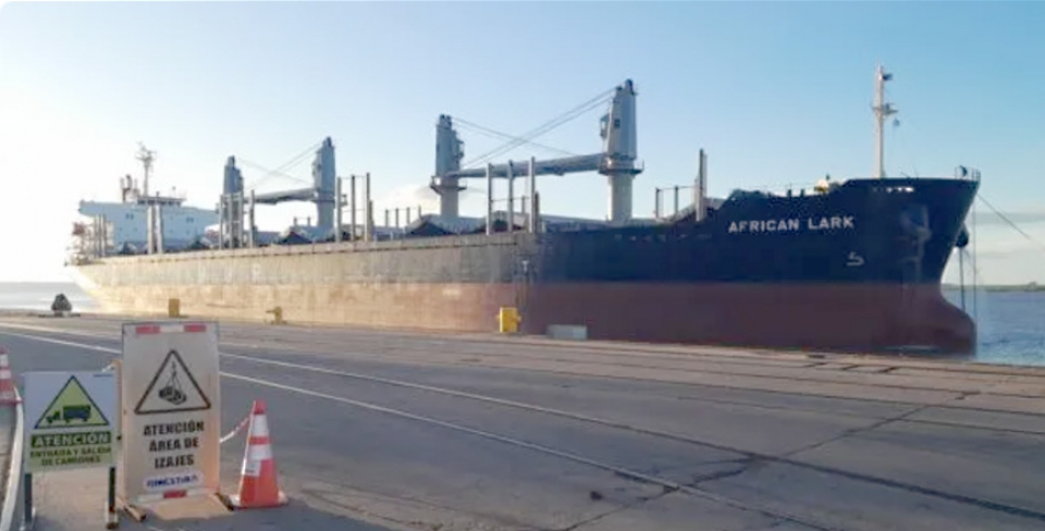 Buque con Destino a India Carga Madera en el Puerto de Fray Bentos